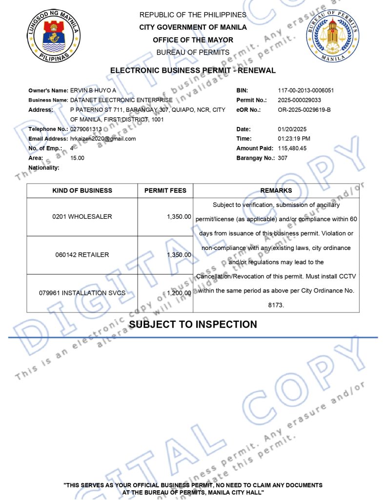 Tel: (02) 8733-9338 Email: info@datanet.com.ph / datanet.ph@gmail.com
